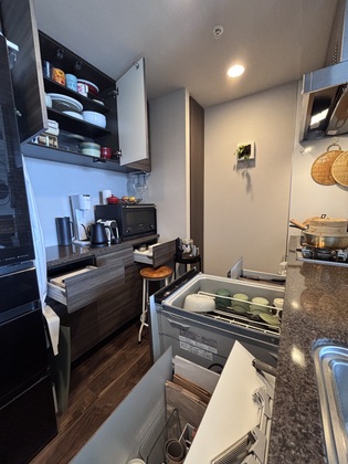 ✔ 食洗機の真正面に食器棚を設置