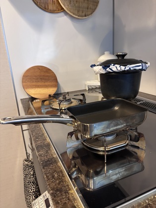お鍋で炊いたほうが早いし美味しいし、残った時もそのまま冷蔵保存できます。炊飯もガスコンロのオート機能でご飯はお任せ。