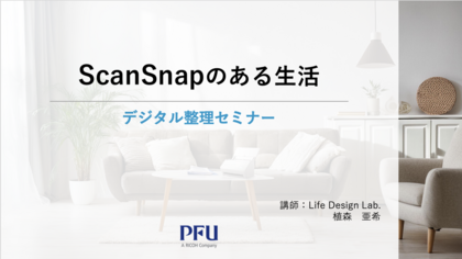 デジタル整理セミナーではScan Snapというスキャナーを使って、紙の書類や思い出の写真をスッキリデジタル化してラクに管理方法を、リコーグループ認定のデジタルパートナーである講師が丁寧にお伝えします。